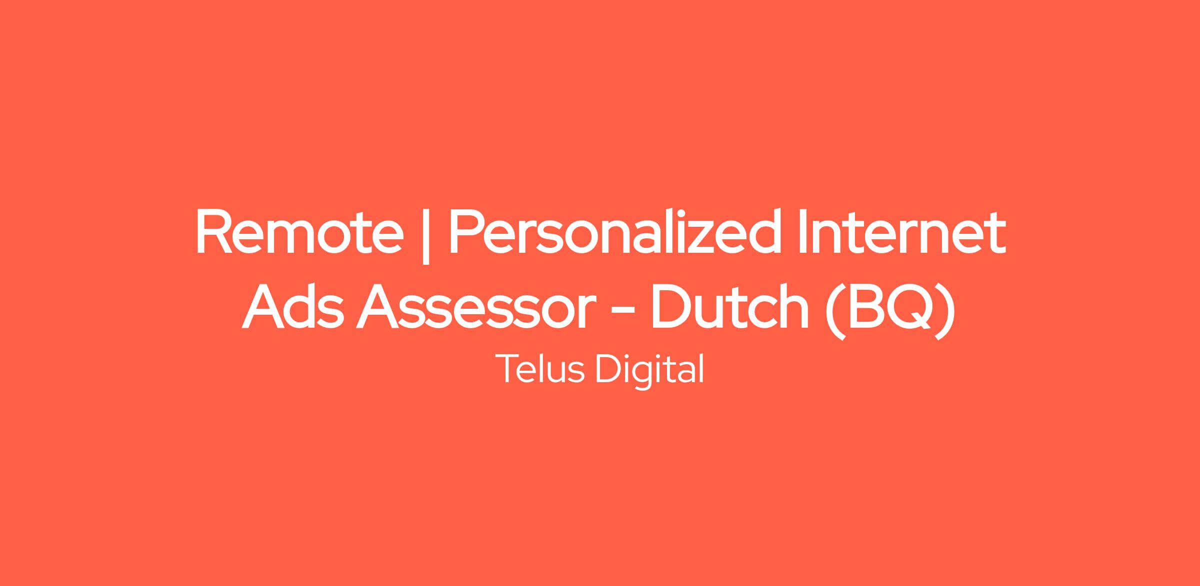 Remote | Personalized Internet Ads Assessor - Dutch (BQ)